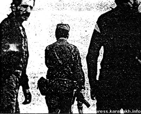 Жители армянских сел Бузлух и Манашид покидают свои дома, напуганные появлением азербайджанского ОМОНа в сопровождении военных вертолетов и бронетехники. Никто не ходет разделить участь населения Чайкенда, ставшего жертвой майе-кой операции «КОЛЬЦО». Фото Владимира ЖАРОВА.